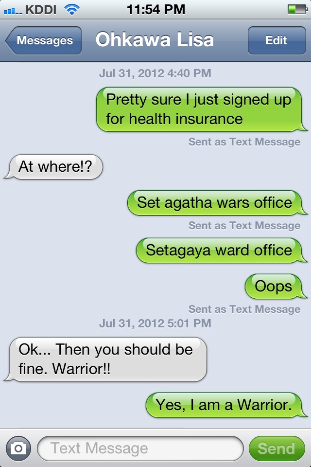 So anyway, I found the right office and they spoke very little English. They took my alien ID card and disappeared for a while. They finally came back, gave me a hand written note in Japanese and sent me to the next building.