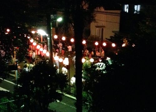 When I got home from work Friday night there was a raging party in the park across the street. There was singing, dancing, drumming and people drinking strange brew from plastic cups. I so badly wanted to join. Alas I just watched from the balcony. Though I did take this blurry picture: