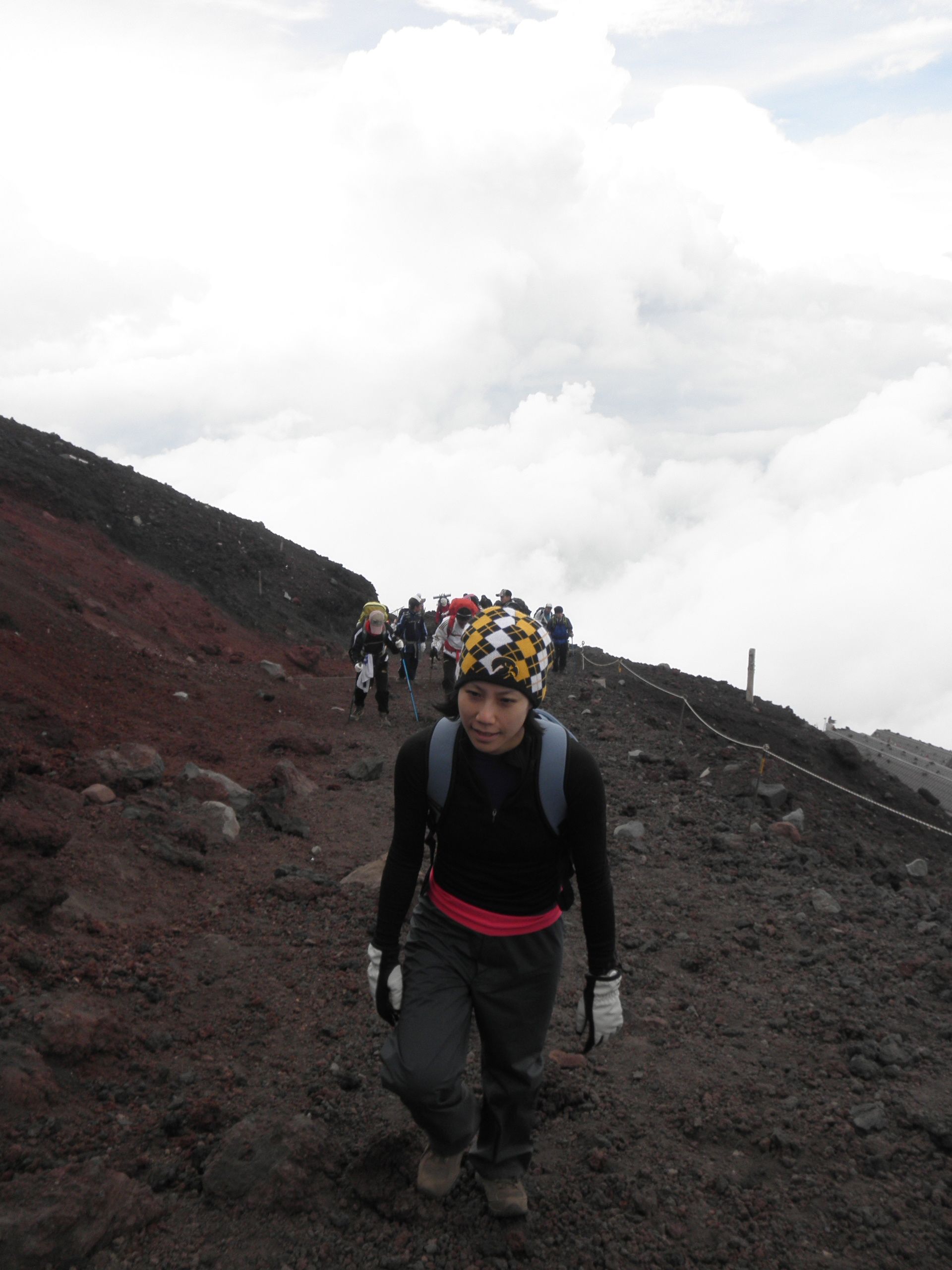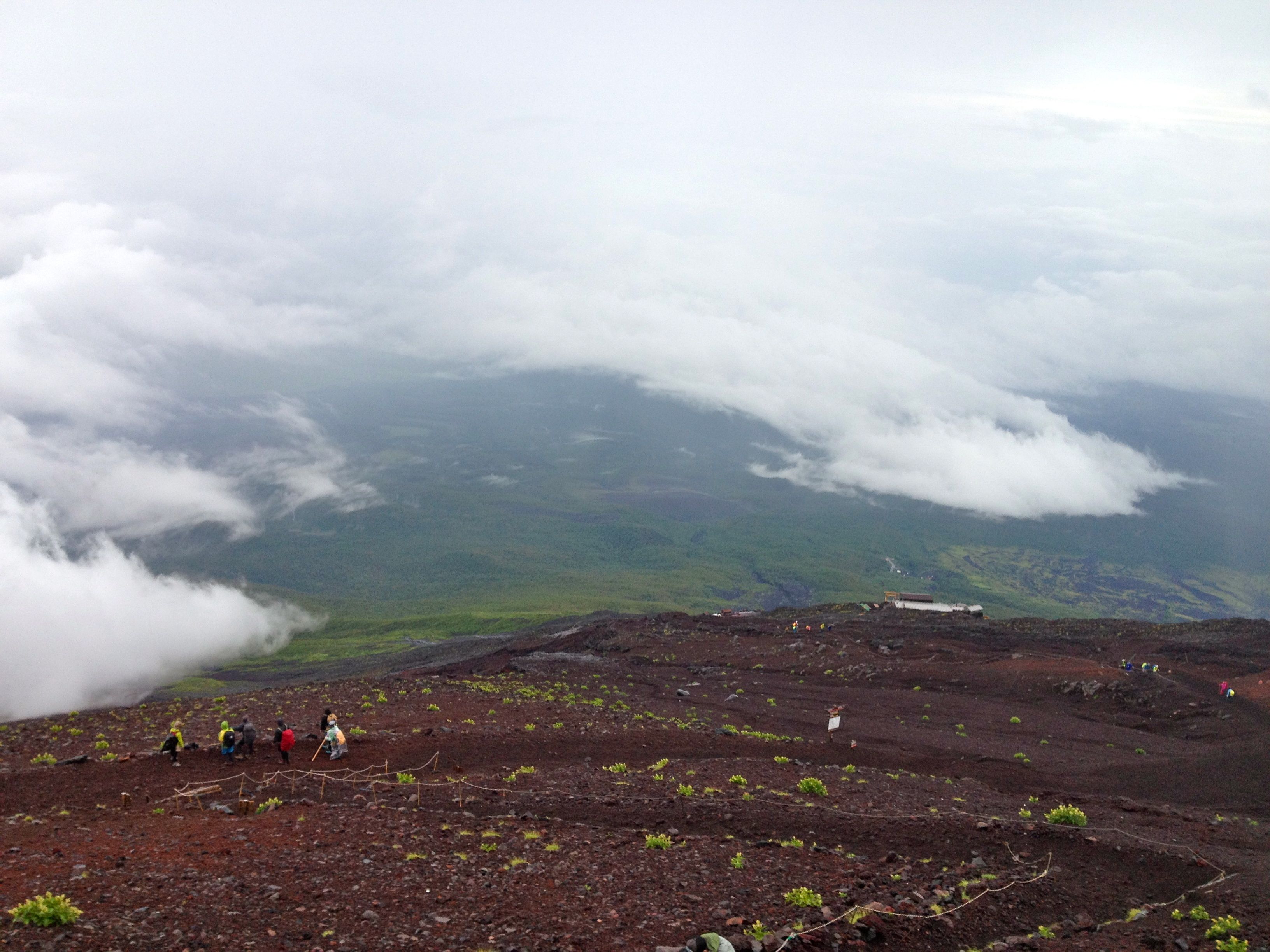 Most people climb Mount Fuji in order to see sunrise at the peak. This is the only time there is an actual view. For most of the day Fuji-san is covered in clouds. They usually leave the day before and stay at one of the hovels at the 7th or 8th station, where they can rest and eat – for a steep price. Then they leave around 3 a.m. to reach the summit by sunrise. Others just hike straight through the night.