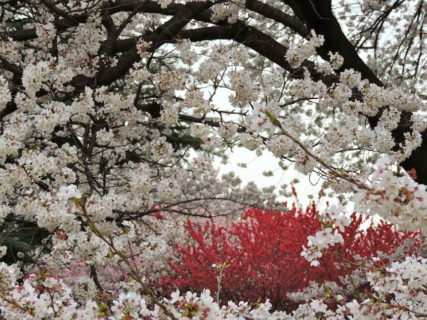 Now, I did not witness it first hand, but apparently the park (which is the size of a small town) is packed elbow-to-elbow with revelers. Drunk revelers who aren’t necessarily there to look at cherry blossoms, but really to hang out and be seen. Kind of like a Phillies baseball game.