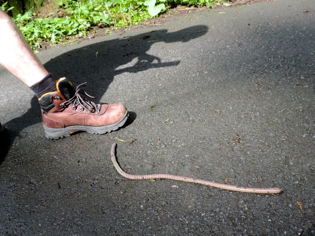 A freaking worm 3 times the size of Joe's boot. A client suggested it might be a tsuchinoko.