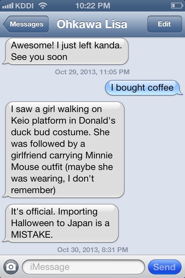 Once again, there’s nothing wrong with it, and it is a brilliant marketing strategy. It just harkens back to Lisa’s comment that Halloween in Japan is a mistake. This holiday holds no intrinsic meaning or cultural significance. It is merely a commercial past time designed to increase sales. We’ve been saying that about Christmas in America for years.