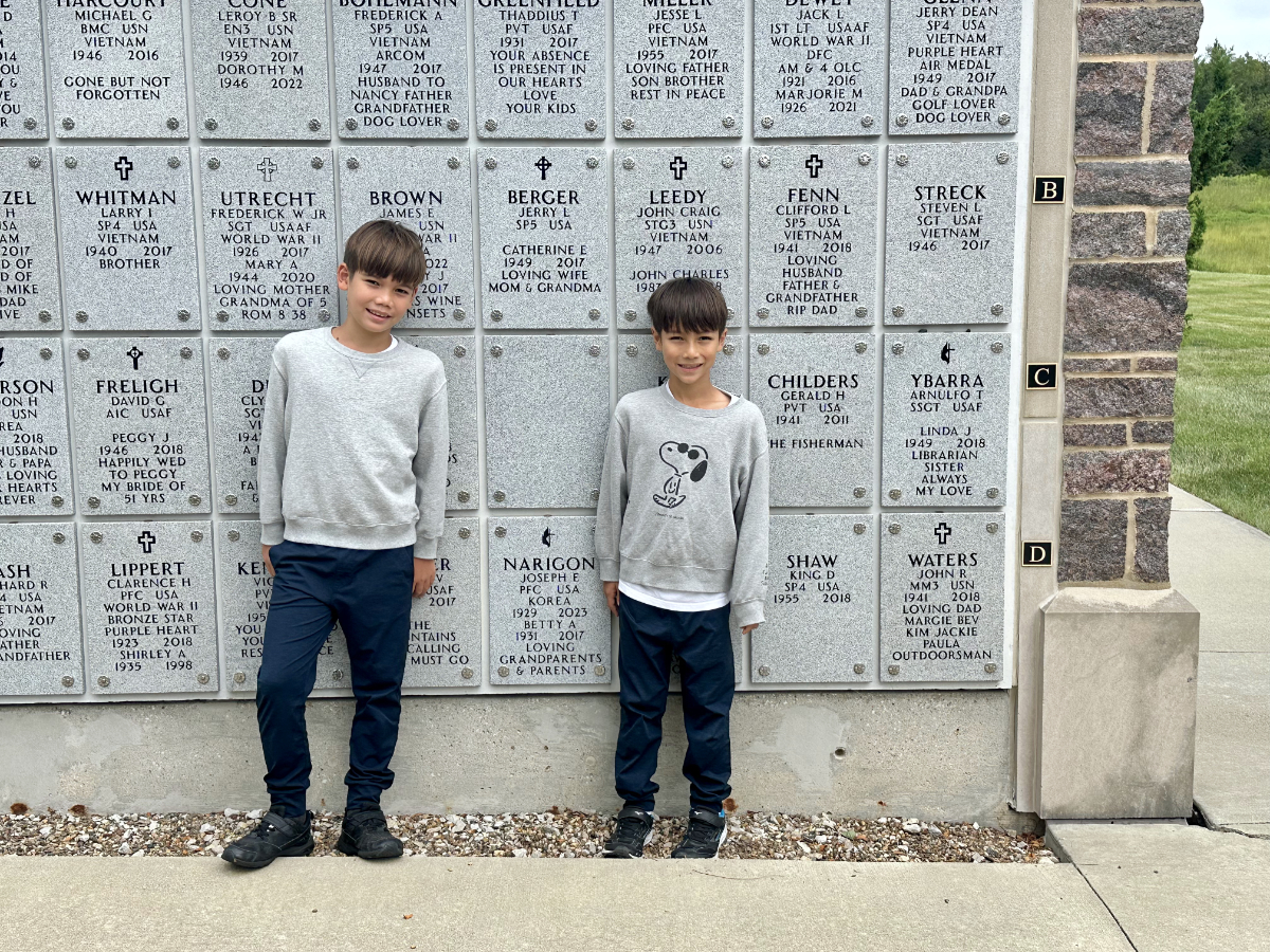 This past month we visited Grandpa Joe’s grave at the Iowa Veterans Cemetery. My dad described the funeral to my boys, what happened and why. They were able to visit the graves of other veterans and learn about their service to our country and the sacrifices made.